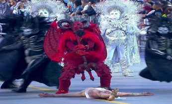 Desfile da Gaviões da Fiel mostra Jesus lutando e sendo derrotado por satanás na avenida e gera polêmica
